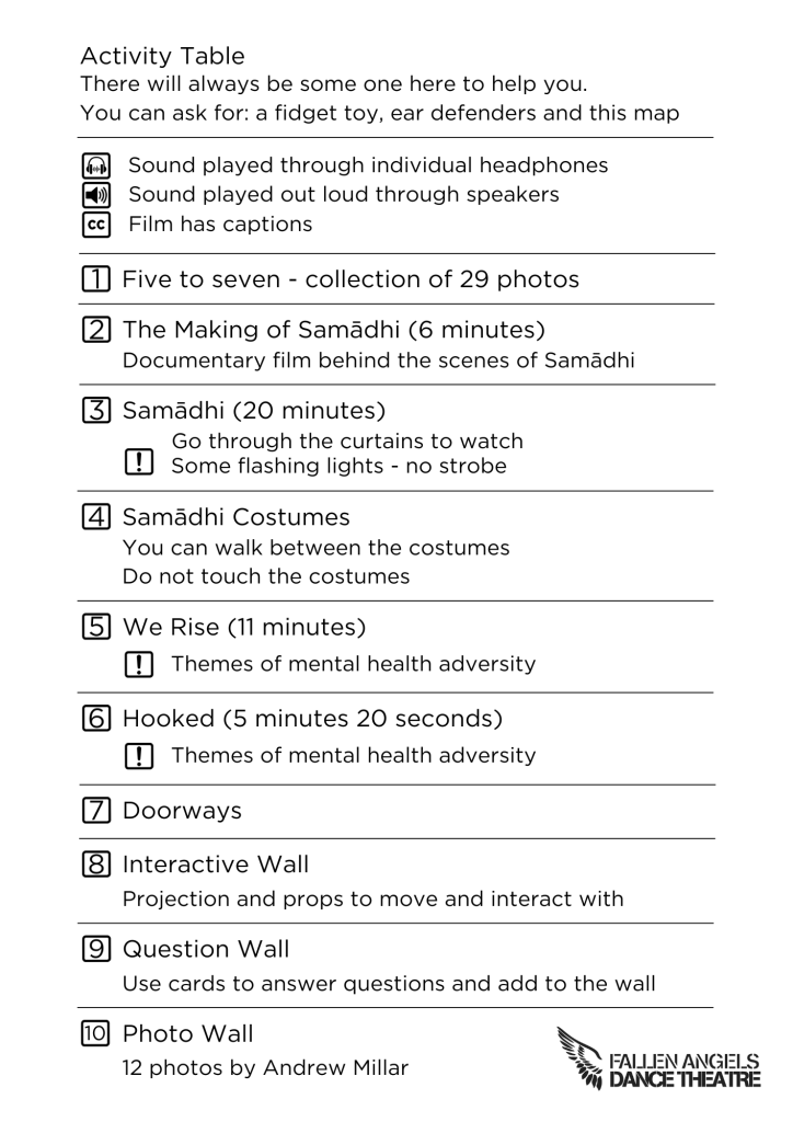 ‘Samadhi’ was initially developed by Fallen Angels in collaboration with New Note Orchestra and people in recovery from substance use as part of the Royal Opera House, Creative Exchange Programme.